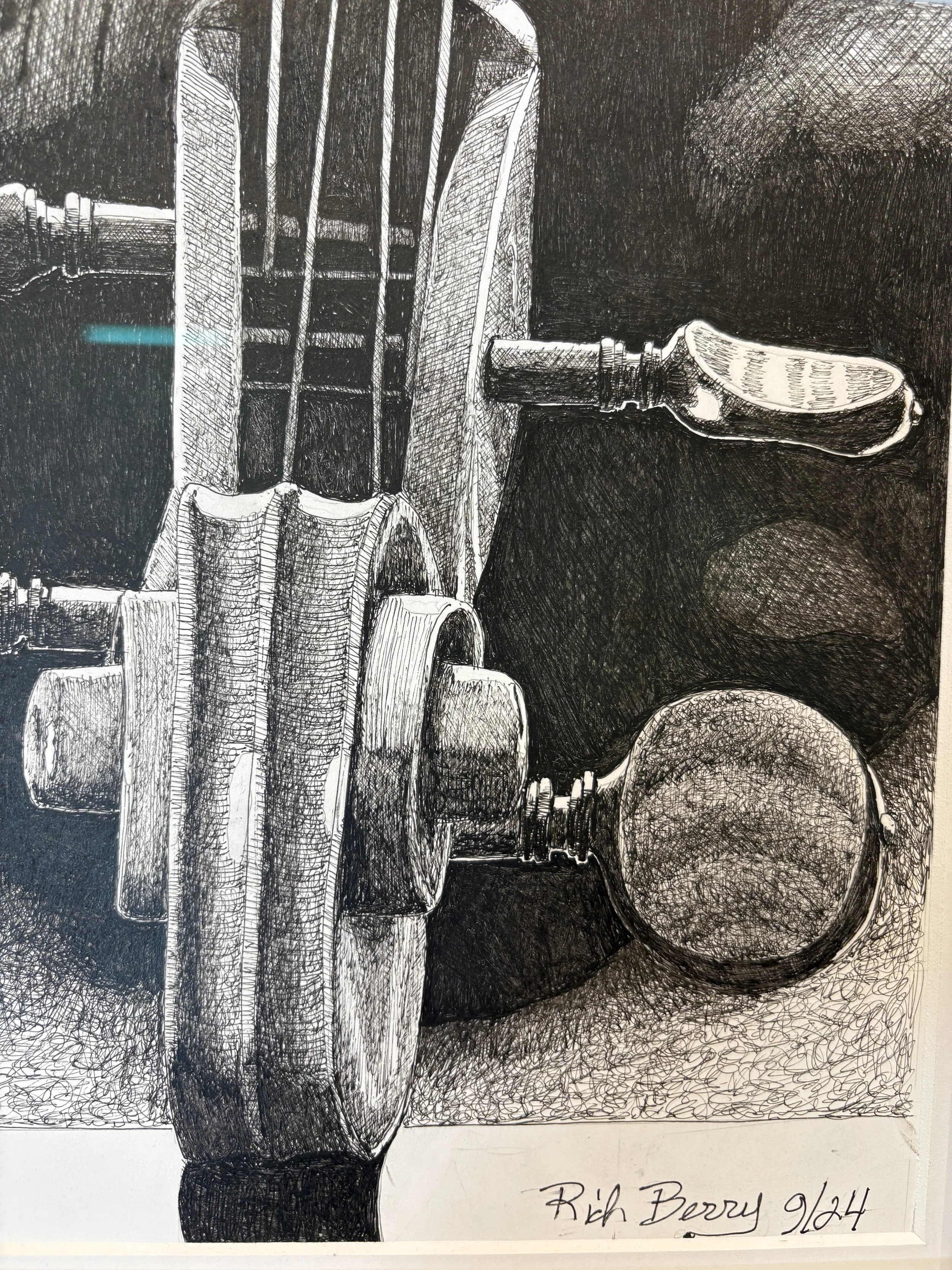 Rich Berry has been an artist for 15 years. He began creating his pen and ink art as a way to diversify his creativity after being a musician for 50 years. His artwork has won many awards, including his very first show at the Sunflower Art Festival in Desoto, Kansas. Much of his work is black and white; however, he also has works in which he uses color ink washes — allowing him to remain a pen and ink artist. He uses a traditional dip pen with India ink and has developed his style using fountain pens with forge proof ink — ensuring the artwork will never fade. Additionally, his work is produced on archival papers.